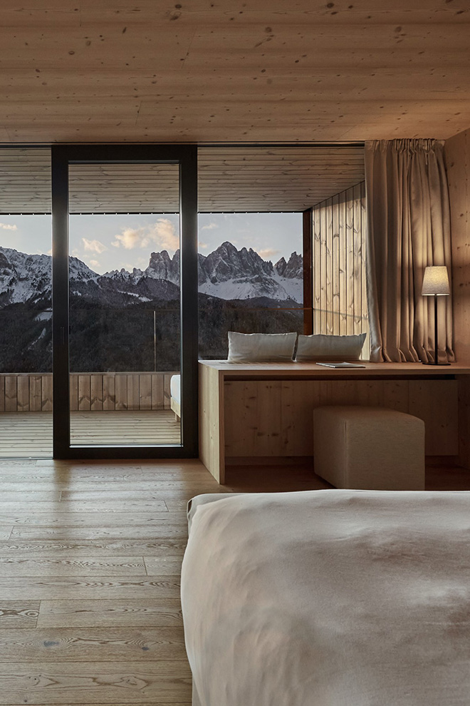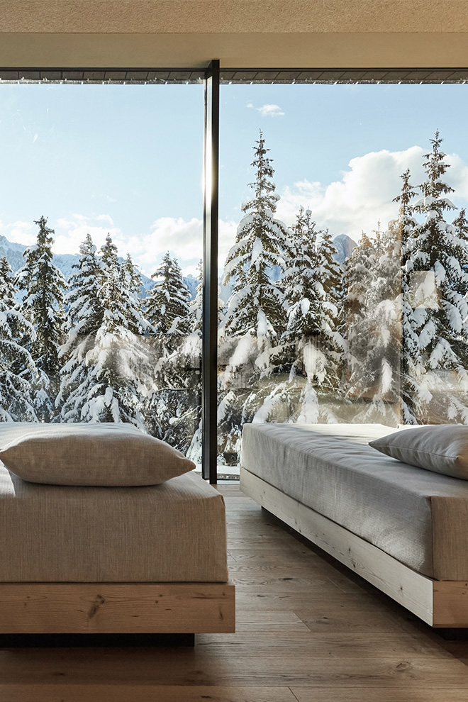 South Tyrol is Italy’s most enigmatic enclave, an intriguing fusion of Italian and German cultures wrapped up in emerald forests, icy-white mountains and the purest of pure air. FORESTIS is a contemporary eco-hideaway that fits in perfectly, refusing to conform to spa norms and instead embracing the region’s ancient Celtic Druid roots. You will find its Druid nature-based philosophy helps you slow down and fall into line with the natural rhythms of this landscape. There are no clocks in the resort, instead days are measured by the twice-daily drama of sunrise and sunset, when the sun washes the jagged peaks of the surrounding Dolomites in a rainbow of uplifting reds, from salmon pink to Persian rouge.