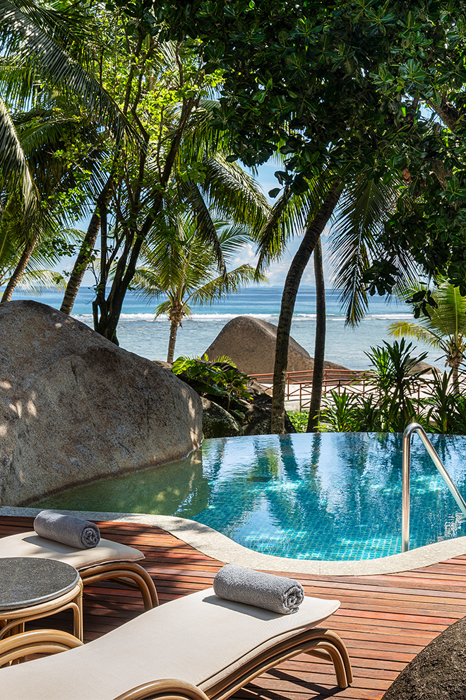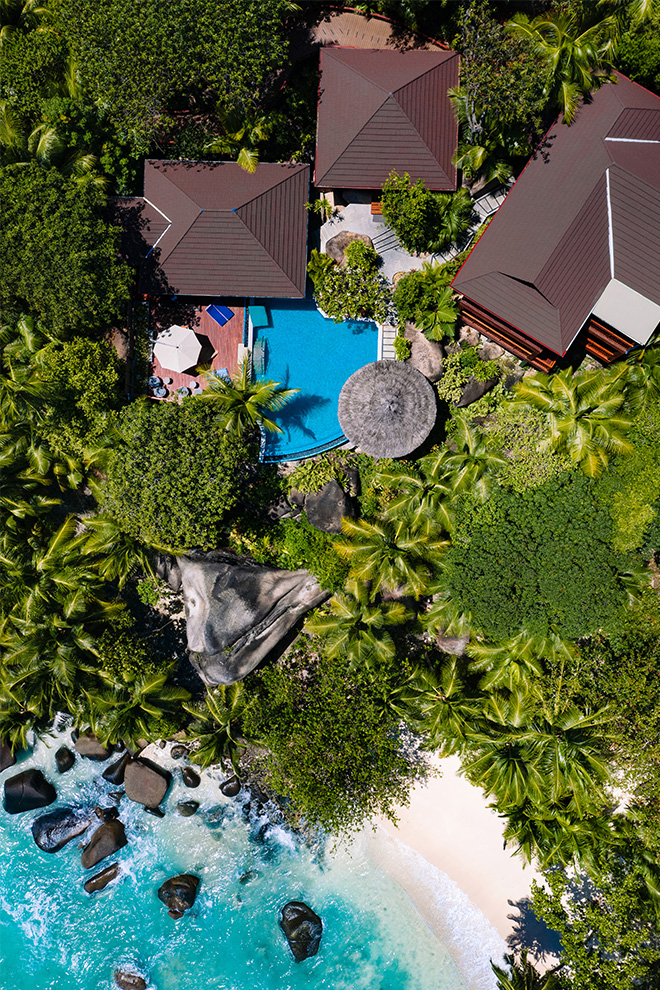 NIVA Labriz Seychelles occupies the most accessible corner of Silhouette Island, a granite-heavy, forested mass rising sharply from the Indian Ocean, where development is limited by both geography and protection status. The resort keeps close to the shoreline, arranging villas along the curve of a long, pale beach and slightly inland under dense vegetation, with paths that feel practical rather than staged. Beachfront villas open directly onto sand and shallow water; garden villas trade sea views for shade, privacy and a more pronounced sense of enclosure.