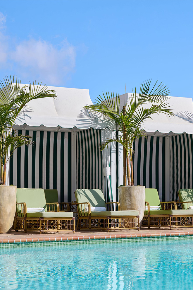 Lillian’s anchors the food offering with California cooking that favours seasonal sourcing, while Bing’s Bar — all dark wood and low light — earns its reputation as a place where cocktails linger and conversations stretch late into the evening. Accommodation ranges from polished guest rooms with marble bathrooms to bungalows with fireplaces and private patios, each designed to cocoon.