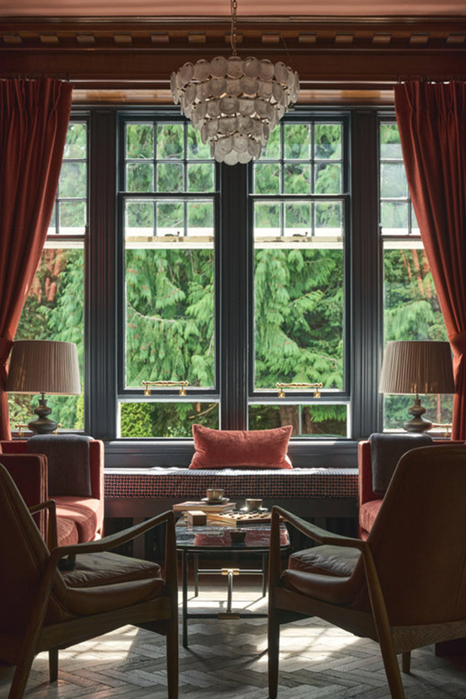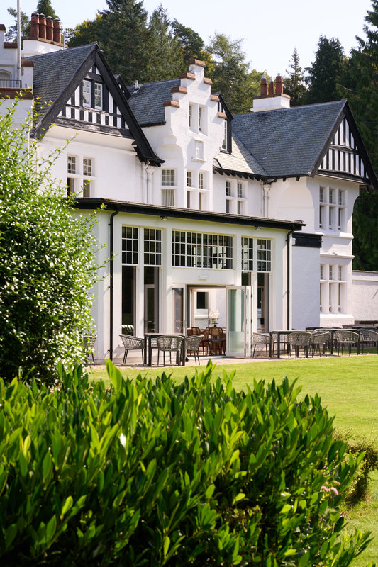 Spread across a 32-room Victorian mansion and a six-room coach house, Pine Trees Hotel is a charming country house retreat surrounded by 10 acres of secluded gardens. The rooms — particularly those facing the garden — layer Highland romance with contemporary comfort. Think deep soaking tubs, wool throws, and windows framing drifting pines. Downstairs, Fauna Restaurant leans into Scotland’s larder with finesse, from locally sourced venison to delicately handled seafood that feels both rustic and refined. While the interiors take a fresh, polished approach to English country style — neutrals lifted by accents of salmon pink and fern green — it’s the restaurant and Flora Bar that make the strongest impression. Low-lit and cocooning, Flora is all curved banquettes in rich green fabrics, botanical motifs, and brushed brass detailing. After dinner, it’s the sort of place where a Scottish whisky stretches into the night.
