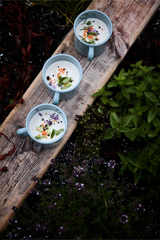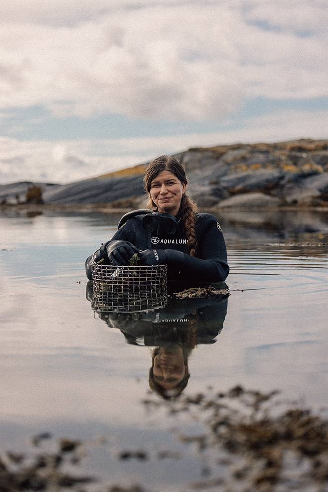 Antje — Seaweed is wonderfully seasonal, with the winter months being the most abundant. Around LILLØY we are blessed with an incredible variety growing in the waters and on the rocks, which allows me to carefully handpick only the finest qualities to bring back to the kitchen. The island’s meadows are also rich in herbs, which we love to weave into our dishes.