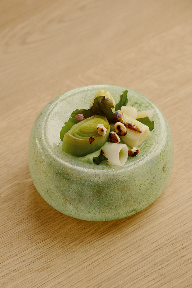 Antje — The ceramics by Joris-Jan Bos and the glassware by Sigrid Rostad capture the beauty, colours and shapes of the island. Each piece is made individually, with this island place and purpose in mind. For us, it is about translating nature and its ingredients onto these artworks, creating a harmony between food and craft.